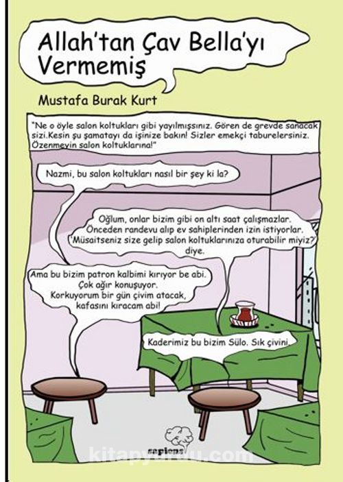 Aynitap.com edebiyat kulübüne hoş geldiniz. Bugün Allah’tan Çav Bella’yı Vermemiş kitabını sizler için incelemeye aldık. Lütfen beğendiğiniz kitapları satın alınız. Unutmayın ki yeni kitaplar yayınlanmazsa bizlerinde var olması mümkün olmayacaktır. Allah’tan Çav Bella’yı Vermemiş kitabı için satın alma linkini de aşağıda vereceğiz. Şimdi kitabımıza geçelim: Allah’tan Çav Bella’yı Vermemiş kitabı için yayınlanan açıklama ve basıl bülteni: Allah’tan Çav Bella’yı Vermemiş Mustafa Burak Kurt Ezilmeye dayanamayıp greve giden koltuklar, serinlemek için cehennemden görüntülü arayanlar... Kul hakkına faizi katık edip yer sofrasına oturanlar, öte yanda bozuk tartılarda maliyeti hesaplanan çocuklar... Daha kimler ve neler! Konuşmayı beceremeyen insanlar, insanlığından utanan eşyalar... Mustafa Burak Kurt, suyu sabuna katıp dişe dokunan hatta dokunduğu dişi kıran hikâyeler anlatıyor. Bir eli siyasî mizahta, bir eli toplumsal eleştiriyi yoklarken okuyana kahkahalar attıracak diyaloglar kuruyor. ***** Allah’tan Çav Bella’yı Vermemiş kitabını için satın alma linkleri: Allah’tan Çav Bella’yı Vermemiş kitabını satın al ***** Allah’tan Çav Bella’yı Vermemiş indirme linkleri: Allah’tan Çav Bella’yı Vermemiş kitabını PDF İndir Allah’tan Çav Bella’yı Vermemiş kitabını ePub İndir Allah’tan Çav Bella’yı Vermemiş kitabını Mobi İndir ***** Sizler için bugün Allah’tan Çav Bella’yı Vermemiş kitabını ele aldık. Allah’tan Çav Bella’yı Vermemiş kitabı için mümkün olduğunca fazla bilgiye yer vermek istedik. Bu bağlamda Allah’tan Çav Bella’yı Vermemiş kitabının yazarı, Allah’tan Çav Bella’yı Vermemiş kitabının fiyatı ve Allah’tan Çav Bella’yı Vermemiş yayınlanma yılı gibi bilgilere yer verdik. Umarız Allah’tan Çav Bella’yı Vermemiş kitabı için oluşturduğumuz yazımız hoşunuza gitmiştir. Bir sonraki kitap inceleme yazımızda görüşmek dileğiyle. Not: Bu web sitesi sadece Allah’tan Çav Bella’yı Vermemiş kitabı için tanıtım yapmaktadır. Hiçbir şekilde sunucularında dosya barındırmamakta ve korsan kitapçılığı desteklememektedir. Değerli okuyucumuz Allah’tan Çav Bella’yı Vermemiş kitabını beğendiyseniz emeğe saygı olarak mutlaka satın almanızı tavsiye ederiz. Allah’tan Çav Bella’yı Vermemiş kitabı yazarının sizlere daha fazla kitap sunabilmesi için bunun önemli olduğunu unutmayınız. ***** Sitemizde en çok okunan kitapları incelemek için buraya tıklayınız.